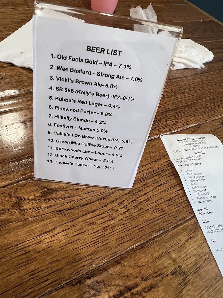 Old Fool Brewery Menu